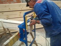 Станок крепиться основанием - направляющими непосредственно на обрабатываемый брус и фиксируется. Обрабатывающий узел - специализированный ручной фрезерный станок Makita установленный на рамку, которая скользит по основанию. Ширина паза выставляется с помощью ограничителей на рамке. Глубина паза выставляется непосредственно на обрабатывающем узле. Обработка производится специальной концевой фрезой с твердосплавными напайками или сменными ножами (опция).
