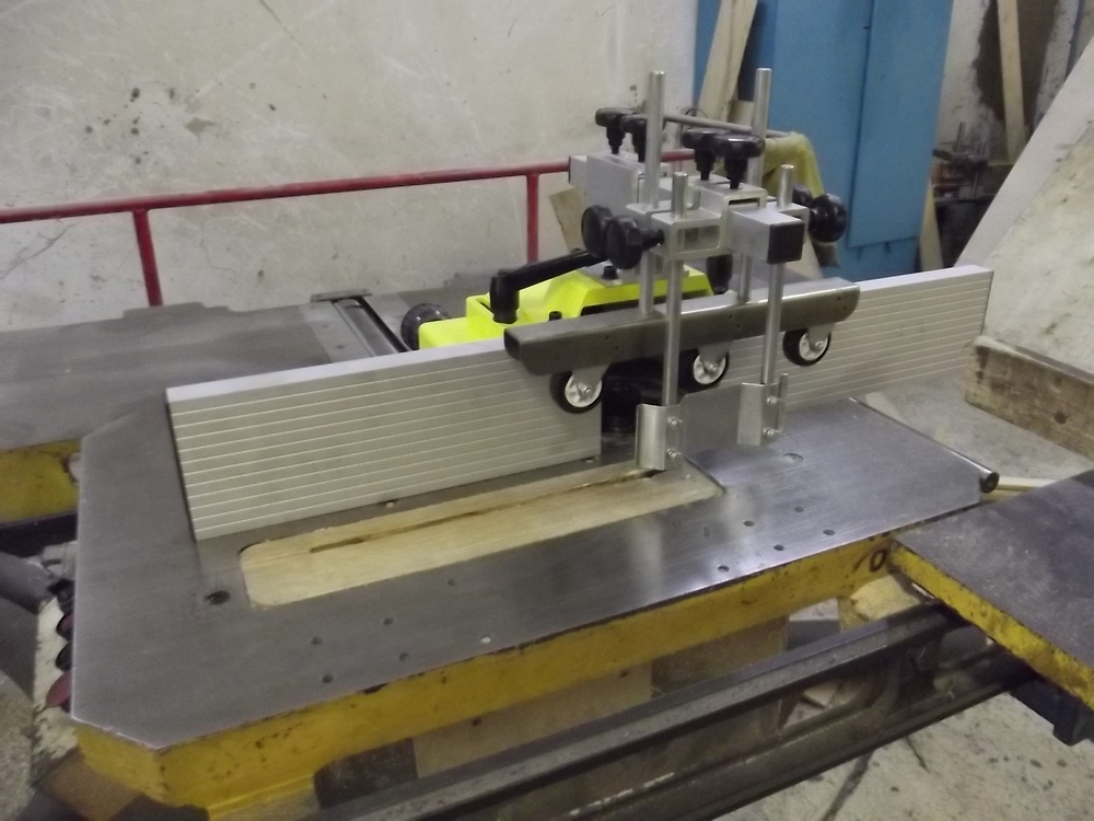 Для обеспечения безопасности и увеличения производительности труда обрабатываемый материал прижимается подпружиненными роликами сверху и сбоку.