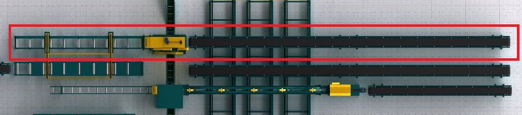 С подающим и промежуточным столом для горбыля до 6м, с автоматическим отделением обрези, с приемным приводным столом 6м, с регулируемой скоростью подачи