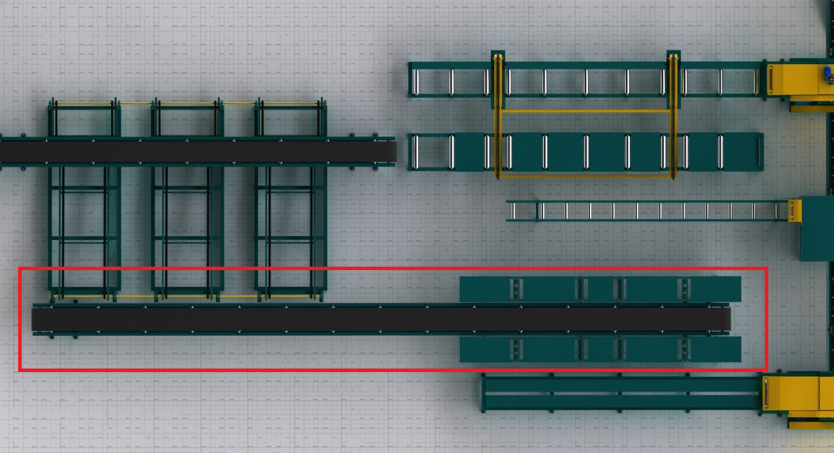 5-1) Приемный приводной стол брусующего станка, с отделителем обрези, 14,5м. |