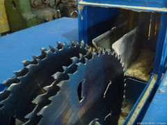 Если коэффициент X получается не больше 5, как в нашем примере - пилы работают в нормальном режиме. Если коэффициент получается больше 5, то необходимо увеличивать подачу на зуб одним из трех способов: либо а) увеличивать скорость подачи заготовки, либо б) ставить пилы с меньшим количеством зубьев, либо в) снижать скорость вращения пил, однако оптимальная скорость вращения пил для определенного диаметра находится в достаточно узком диапазоне, поэтому изменением данного параметра серьезного увеличения подачи на зуб (без вреда для режима работы пилы) не добиться.