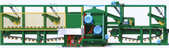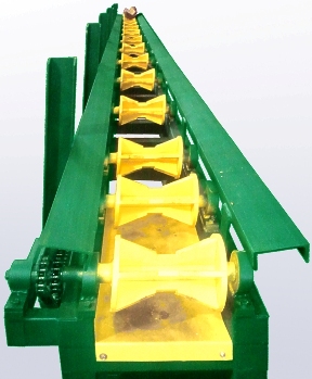 Подающий стол. Для подачи бревен в станок идельно подходит роликовый конический транспортер. Скорость транспортера синхронизируется со скоростью гусеничной системы подачи станка, отдельная регулировка не требуется. Подающий стол может быть оснащен кантователем бревен, который позволяет оптимальным образом расположить заготовку на подающем столе перед распиловкой