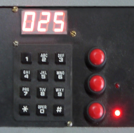 Опционально можно заказать электронную индикацию расстояния между пилами (______ руб.): в данном случае оператор будет перемещать пильные узлы нажатием кнопки на выносном пульте управления станка (с которого происходит управление и всеми остальными функциями станка), а расстояние между пилами будет высвечиваться на электронном цифровом дисплее, встроенном в этот пульт. Когда требуемое значение достигнуто, оператор отпускает кнопку перемещения. С этой опцией нет необходимости подходить к отдельному блоку управления расстоянием между пилами на станке, а так же повышается точность задания расстояния между пилами.