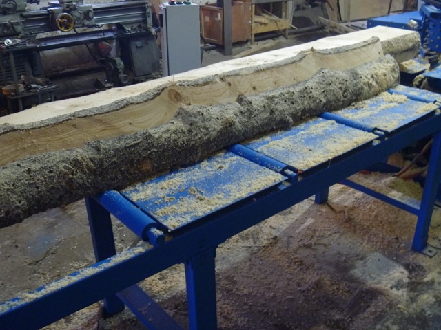 Пара вертикальных рябух полностью вытягивает горбыль и доски из пильного узла.