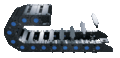 В базовой комплектации кабели от электрического шкафа, протянутые к каретке станка, подвешены на тросе, натянутом между двумя стойками на концах станины. Прокладка данных кабелей в гибком кабель-канале, проходящем в закрытой боковой зоне станины, повышает удобство загрузки бревен (можно использовать тельфер с любой стороны) и минимизирует риск повреждения кабелей при работе.