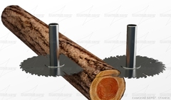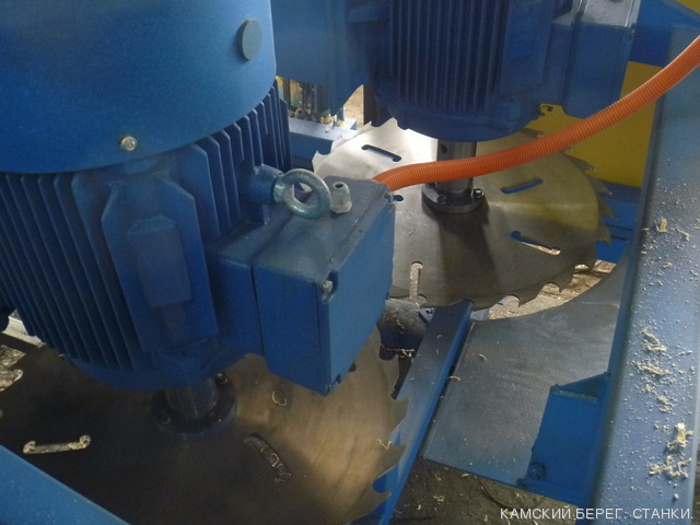Возможность использования пил различных диаметров. В базовой комплектации станок предназначен для работы только с пилами одного диаметра (600 или 550мм на выбор). При заказе данной опции на каретке делаются дополнительные пазы креплений пильных узлов и при желании двигатели можно сводить и разводить относительно друг друга для установки пил иного диаметра. Опция позволяет повысить гибкость и универсальность станка, так, например, получив тонкомерный лес, можно установить пилы меньшего диаметра с меньшим пропилом и несколько сократить расходы материала, повысив общий процент выхода.