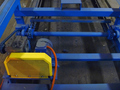 4) Электромеханический привод перемещения каретки станка по раме работает по принципу рейки, по которой катится шестерня. В качестве рейки используется жестко приваренная к раме станка цепь. Такая конструкция обеспечивает очень точную и плавную подачу каретки без каких-либо рывков. Усилие прижима шестеренки к рейке так же точно регулируется. При этом приводной механизм подпружинен в двух плоскостях, что оберегает его от перегрузок и поломок при возникновении нештатной ситуации (например, если каретка по недосмотру персонала во что-то уперлась, то приводная звездочка просто отыграет и ни редуктор, ни двигатель не пострадают.)