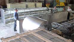 В связи с растущими ценами на энергоносители, к изоляции сушильных камер предъявляются повышенные требования. Наше предприятие пошло на определенные затраты по приобретению и изготовлению оборудования для производства пенополиуретановых теплоизоляционных панелей из-за объективных реалий. Если посмотреть фотогалерею сушильных камер нашего производства, то на их крышах во время работы в зимних условиях, лежит и не тает снег, что является показателем энергосбережения. Мы считаем, что сушильные камеры с большими загрузочными объемами, не должны иметь другой изоляции, кроме пенополиуретана. И дело даже не в более низком коэффициенте теплопроводности этого изолятора относительно минеральной ваты. А дело в конструктивно заложенном, общем коэффициенте теплопроводности всего корпуса сушильной камеры. В сушильных камерах, имеющих большие площади ограждений, чтобы избежать проседания минераловатных матов от времени, шаг ячеек делается более частым. Но частые ячейки увеличивают количество тепловых мостов. На внутренних поверхностях ограждений сушильных камер с большим объемом загрузки, трудно добиться герметичности на стыках алюминиевых листов, и со временем, в процессе работы она нарушается. Температура, вода и пар легко убирают гидрофобизацию стекло или базальтового волокна. Влажные маты становятся теплопроводными. Чтобы теплопотери не концентрировались в отдельных местах, т.е были менее заметны, наружные листы ограждений монтируются на некотором расстоянии от минераловатных плит. При этом гофра алюминиевого профнастила обязательно направлена сверху вниз. Такой конструкцией достигаются следующие цели: влага конденсирующаяся на внутренней поверхности наружных листов стекает вниз во внутреннем пространстве, т.е камера "плачет", но снаружи этого не видно; теплопотери располагаются равномерно по всей поверхности, поэтому на ощупь нельзя почувствовать разницы в несколько градусов на поверхности корпуса и окружающей среды.