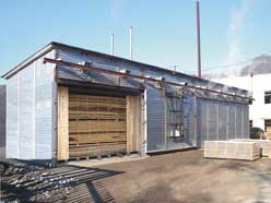 Строительство комплекса панельных сушильных камер состоящиего из 6-ти автономных камер. Общий обьем загрузки комплекса сушильных камер - 120 куб.метров древесины