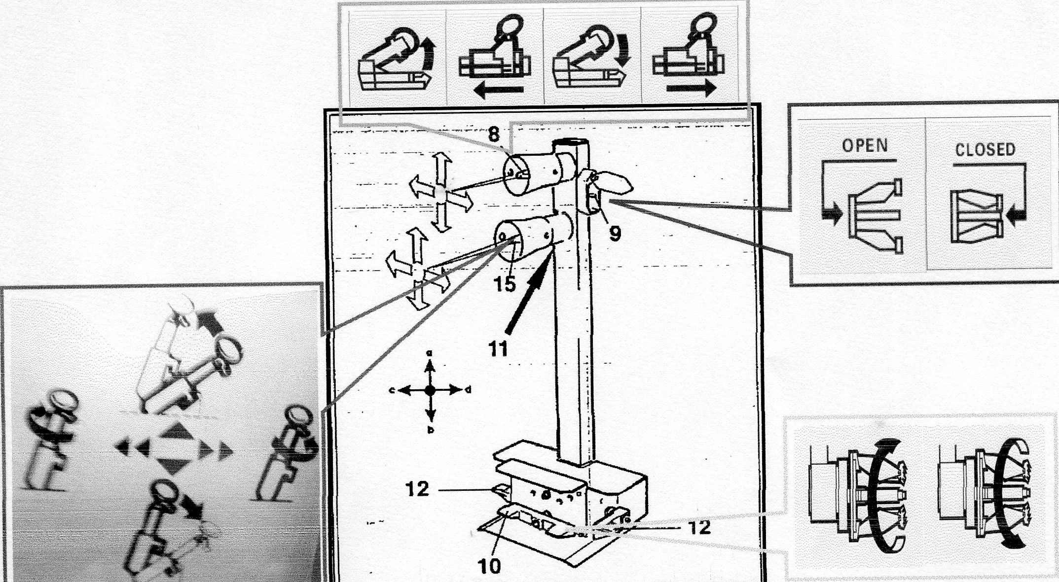 Тумблер 9 управляет разведением – сведением лапок устройства зажима.
