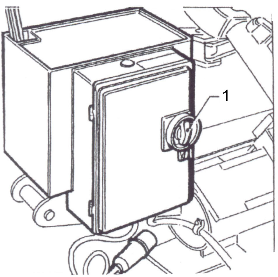 Шкаф силовой (см. Рисунок 4), конструктивно представляет собой сварной шкаф с дверью, закрывающейся на замок и имеющей знак «» по ГОСТ 12.4.026-76. На дверце шкафа расположен автоматический выключатель 1, предназначенный для включения и выключения электропитания, он обеспечивает защиту стенда от короткого замыкания, а также тепловую защиту электродвигателей. Пускатели, установленные внутри шкафа, предназначены для включения вращения шпинделя в нужном направлении. Трансформатор, установленный внутри шкафа, преобразует напряжение 220 В в 24 В для цепей управления. Выпрямительный мост преобразует переменное напряжение 24 В в постоянное, для управления гидрораспределителями.