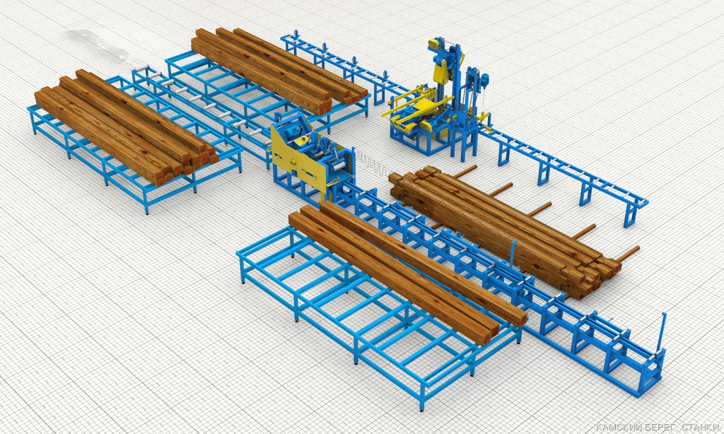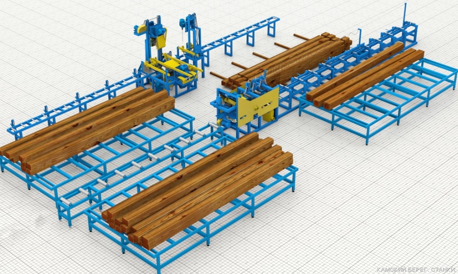 Общее описание комплекса станков для производства срубов из профилированного бруса.