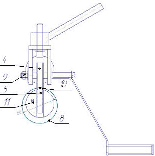 - открутите гайку 9 (см. рис.), медным молотком выбейте ось ролика 4, одновременно