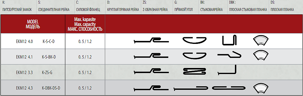 Фальцепрокатный серии EKM станок предназначен для прокатки фальцев, соединительных реек, элементов защелочного соединения, применяемых при изготовлении круглых и прямоугольных воздуховодов. Станок работает с тонколистовой низкоуглиродистой сталью, оцинкованной и без покрытия, а также нержавеющей сталью.