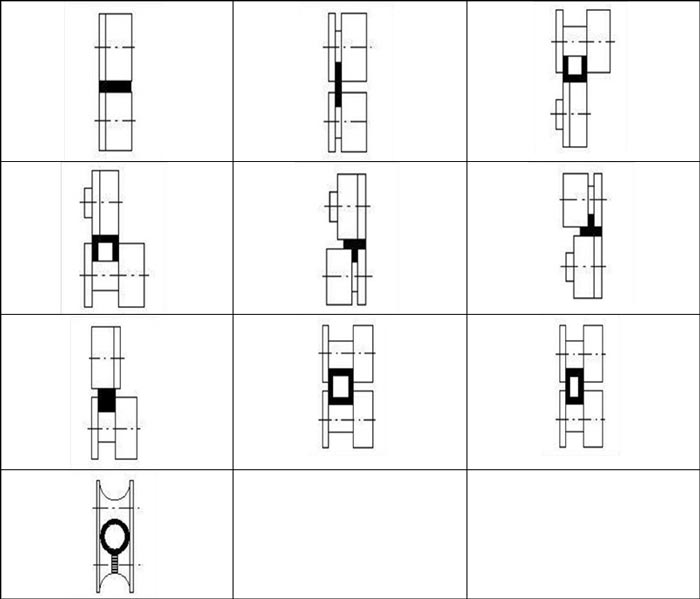+ стандартные ролики; 0 специальные ролики; Х могут понадобиться проставки