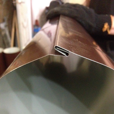 изготовленная водосточная труба будет иметь надежный и герметичный фальц: