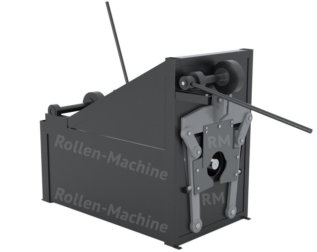 Станок выполнен из станины, на которой жестко закреплены двигатель, направляющие валы, система рычагов на лицевой стороне и механизм подачи (рычаг-рейка). При включении электродвигателя, вращение передается на эксцентрики, расположенные на валу редуктора. Внешний эксцентрик связан с системой рычагов, а внутренний толкает рейку каретки. Первым срабатывает внешний эксцентрик, передавая усилие через систему рычагов на ножи. Ножи врезаются в трубу, образуя складку.