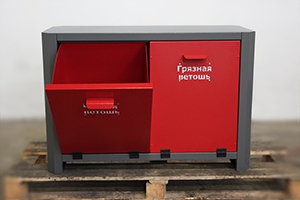 Наша компания изготавливает боксы для ветоши в четырех типоразмерах из стали толщиной 1,5 мм, изделия покрываются порошковой краской и имеют откидные крышки, для удобного доступа во внутрь. Каждая модель бокса для ветоши имеет два отсека для хранения: один для грязной ветоши, другой для чистой.