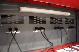 4. Взрывозащищенные светильники. На каждом ярусе зарядных шкафов установлены взрывозащищенные светильники, облегчающие специалисту контроль за процессами заряда-разряда аккумуляторных батарей. |