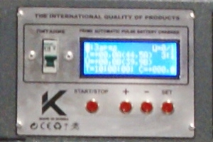 Также управление изделием (выбор алгоритма заряда, разряда, номинального напряжения АКБ, максимального ток и т.д.) осуществляется с помощью символьного жидкокристаллического индикатора и 4-х кнопок, расположенных на лицевой панели изделия. С завода устройство запрограммировано автоматизированными алгоритмами заряда для щелочных и кислотных аккумуляторов.