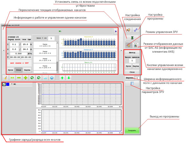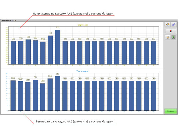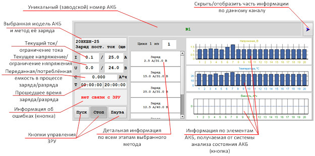 По каждому каналу доступна детальная информация о работе ЗРУ и блока анализа АКБ: