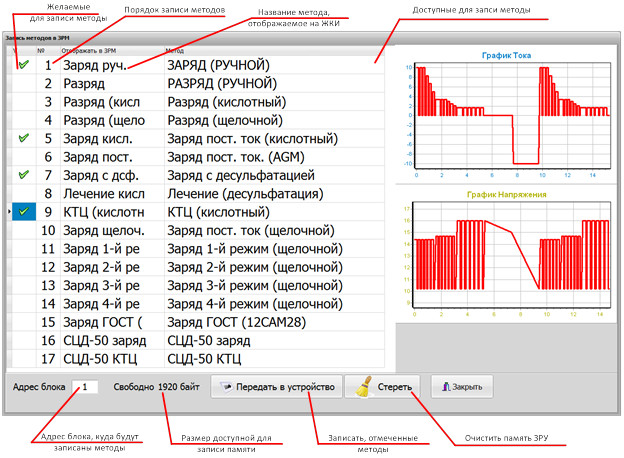 Если же Вы хотите управлять устройством с помощью встроенного ЖК индикатора (без использования компьютера), при этом желаете использовать методы, которые были созданы в ControlEnergy 2, то их можно загрузить во внутреннюю память зарядного устройства: